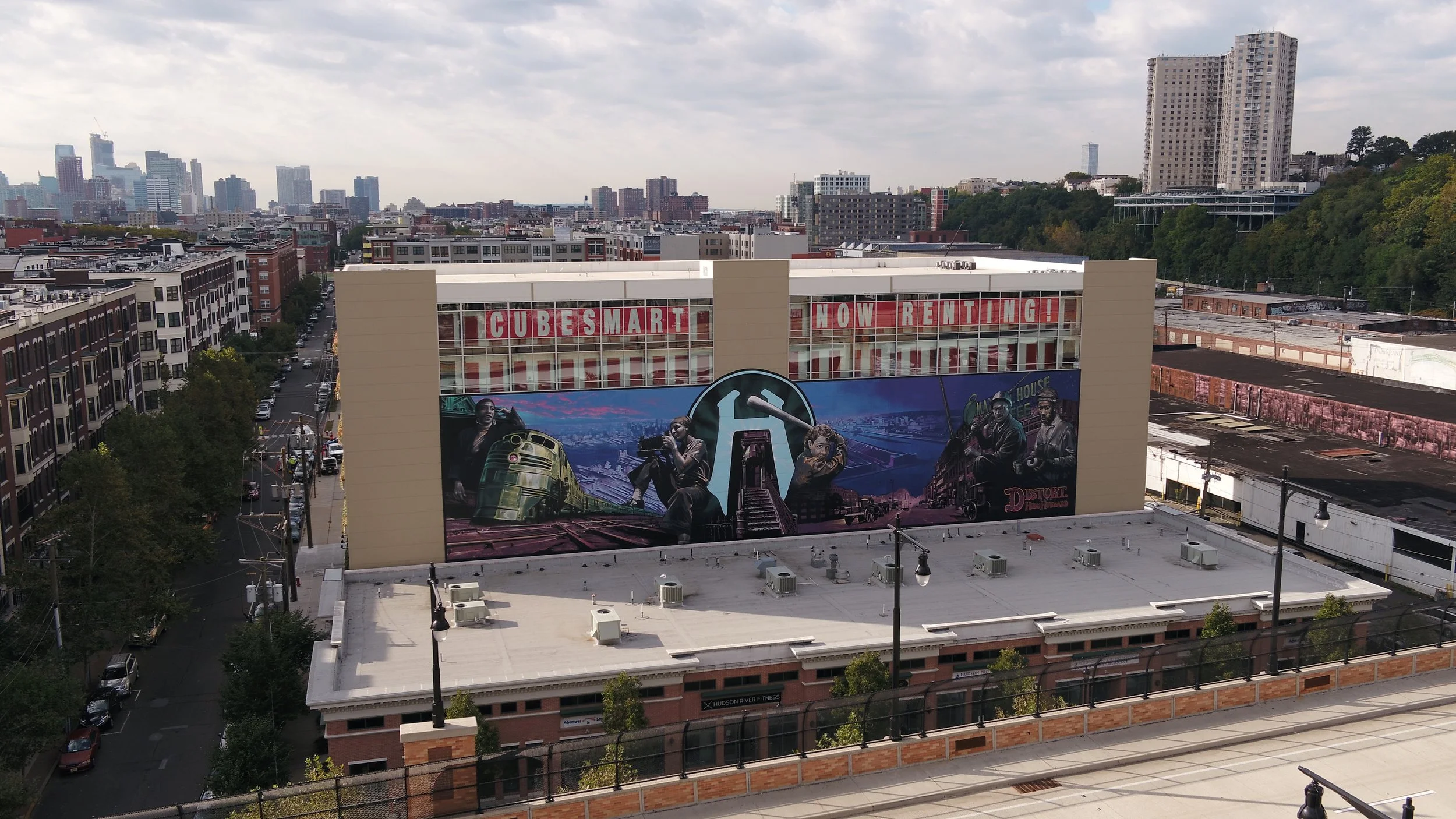 Working with the city to honor Hoboken’s significance as a port and haven for artists, DISTORT completed this 30x50ft mural in 2018. This design includes depictions of powerful women like Dorothy McNeil, Dorothea Lange and Maria Pepe and pays homage to the many dock men who aided in the development of the Mile Square City’s position as a major port in the past.